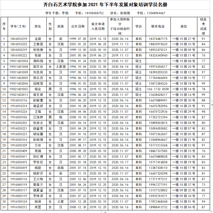 永利3044noc参加2021年下半年发展对象培训班学员名册