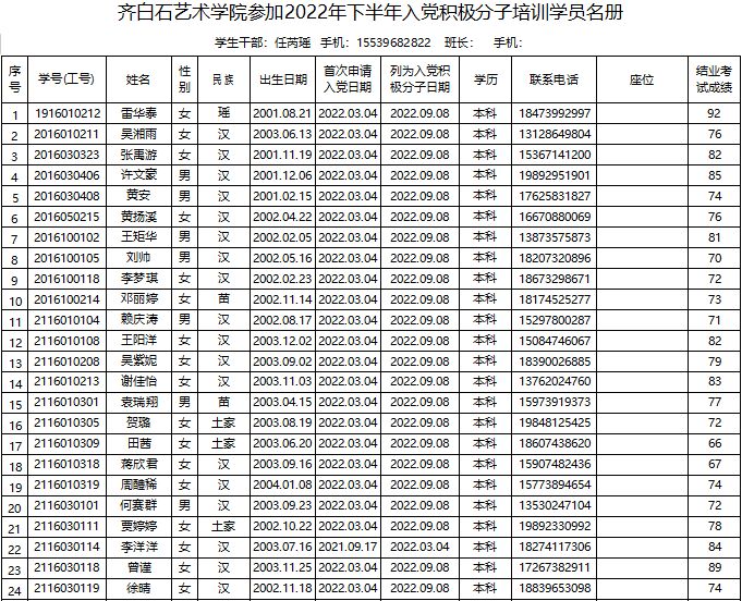 永利3044noc2022年下半年入党积极分子培训班学员名册