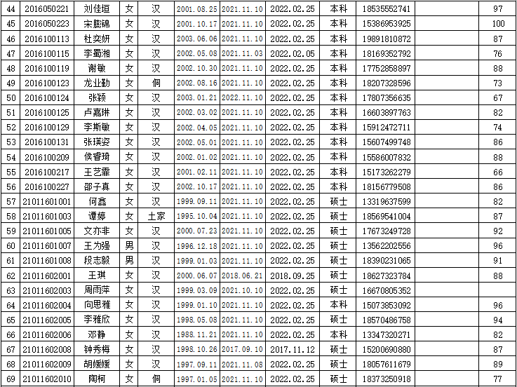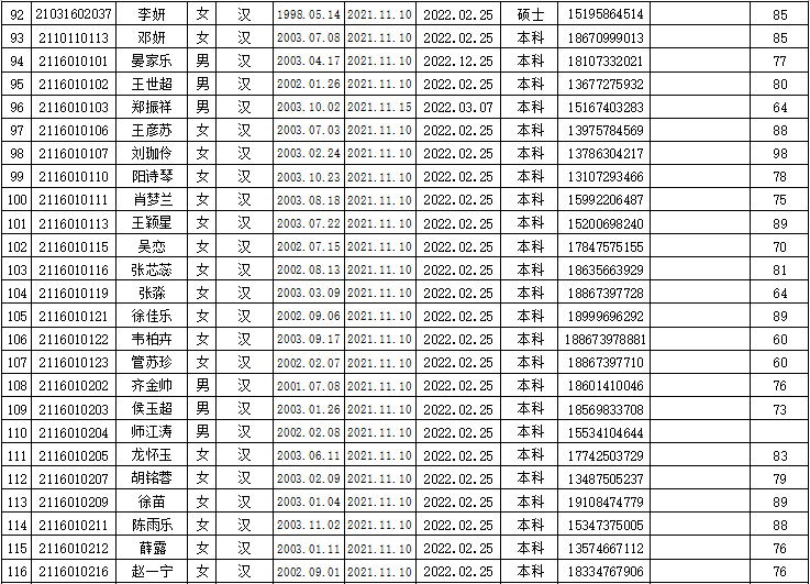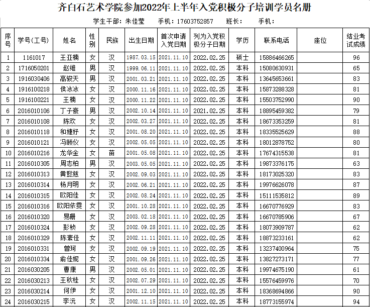 永利3044noc2022年上半年入党积极分子培训班学员名册