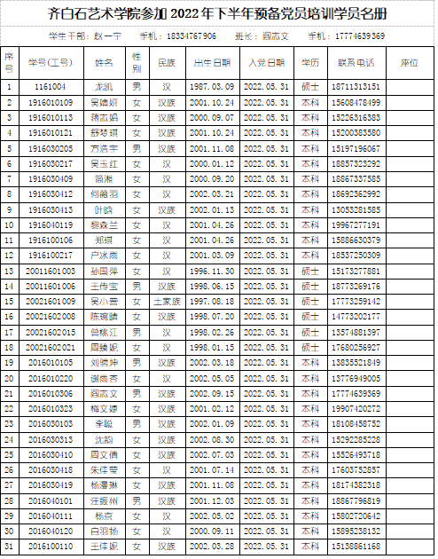 永利3044noc参加2022年下半年预备党员培训学员名册