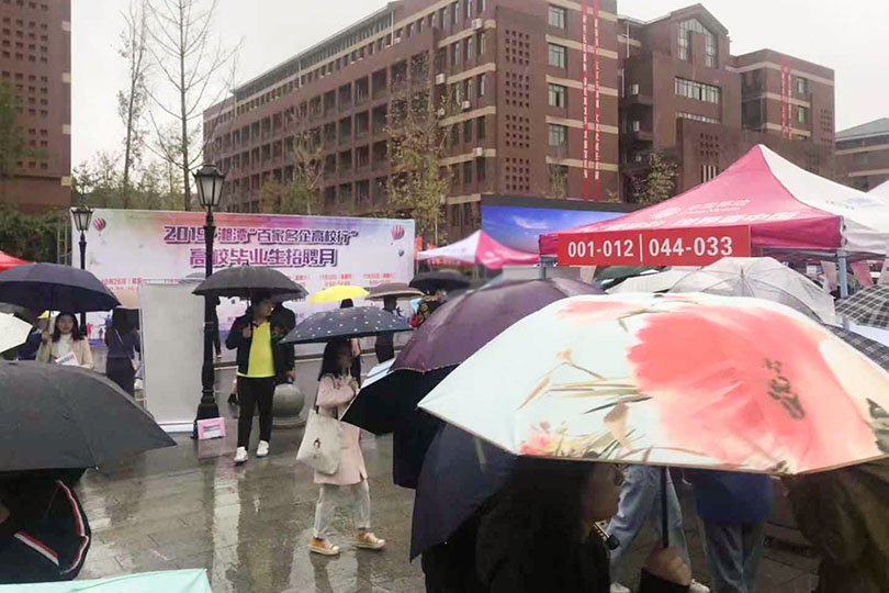 虽然天空中飘着细雨,但公司学子仍然早早地来到了活动现场,就业中心的工作人员积极主动地为每一个来面试有疑问的同学提供最优质的服务,现场各个企业的负责人耐心而详细的为前来咨询的同学介绍他们的工作岗位、工作要求,对同学们进行初步职业指导。同学们纷纷寻找吸引自己的招聘信息,并与相关工作人员积极沟通工作岗位,公司领导、辅导员老师积极组织本学院毕业生参加招聘会,并深入招聘会现场了解情况,加强与企业单位负责人的联系和沟通,积极主动地向用人单位推荐公司优秀的毕业生。在本次招聘会上有幸采访到步步高商业连锁股份有限公司负责人,他表示:“本次招聘旨在挑选、招募高素质人才,通过为其提供快速发展的早期职业生涯和完善的培训计划,从而满足集团对精英人才的需求。只要你想提升自己,我们公司将会给你提供最优秀的平台。”