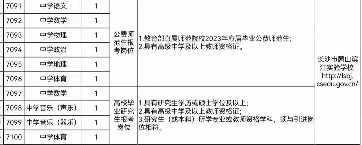 1、《2023年长沙市教育局所属事业单位引进公费师范生和高校毕业研究生岗位表》