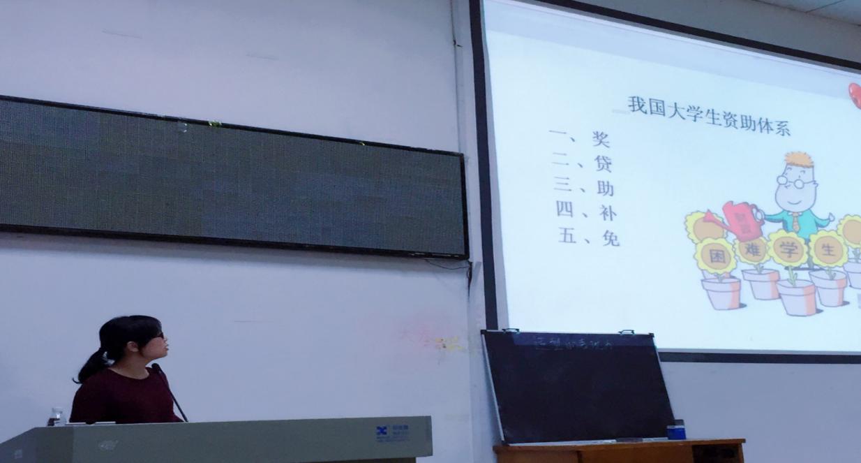 本次讲座由法学院主管资助工作的朱荣老师担任主讲,校资助办公室周老师,邵老师、院学工办主任马老师、员工资助工作辅导员蔡老师、校员工会干部及公司各年级借贷与受资助的贫困学子到场参会。