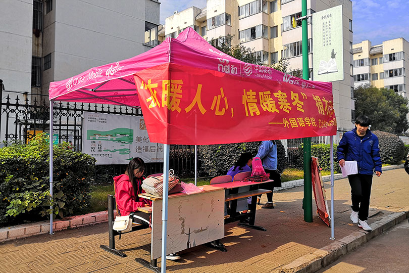 醒目的条幅悬挂在帐篷上,吸引着同学们的视线,志愿者们积极向路过的员工宣传讲解,前来捐赠的人络绎不绝。志愿者们认真地记录捐赠者个人信息,同时也对他们表示出了真诚的感谢,并对捐赠的衣物进行筛选、整理、分类和打包。后期这些衣物将进行清洗、消毒,并且会及时寄送到贫困山区,帮助他们度过一个温暖的寒冬。