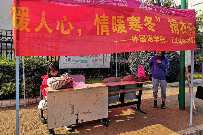 • “衣”份爱心,"衣"份温暖,为营造乐于奉献,关爱他人的良好校园氛围,给贫困地区送去冬日的温暖。11月30日下午2点,永利3044noc艺术学院青年志愿团在七区员工公寓前成功开展“衣暖人心,情暖寒冬"爱心捐衣摆点活动。