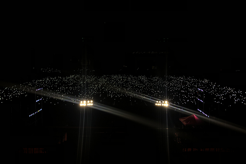 在主持人的介绍中,比赛缓缓拉开帷幕,20个学院以饱满的状态依次登场,《我和我的祖国》为必唱曲目,第二首歌为各学院自选曲目。身着迷彩服的大一新生们站在舞台上,神采飞扬,目光坚定,用激情与活力唱响了青春的独特旋律,展现了永利3044noc莘莘学子的精神风貌。一曲曲红歌充满正气和豪情,带领全场重温那段光辉的红色革命历程。“迎着梦想的方向,凝聚决心和力量”,艺院合唱队用迷人的声线、嘹亮的歌声在比赛中取得了一等奖的好成绩,展现了艺院学子的独特风采,他们意气风发,情绪高昂,用自己的满腔敬意与热忱,抒发着对祖国的热爱与对革命志士的崇敬之情,比赛结束后,公司合唱队再次登场,带领全场观众大合唱,以表达对祖国的深深祝福,台下挥舞闪动的光芒汇聚成一片斑斓的海洋。