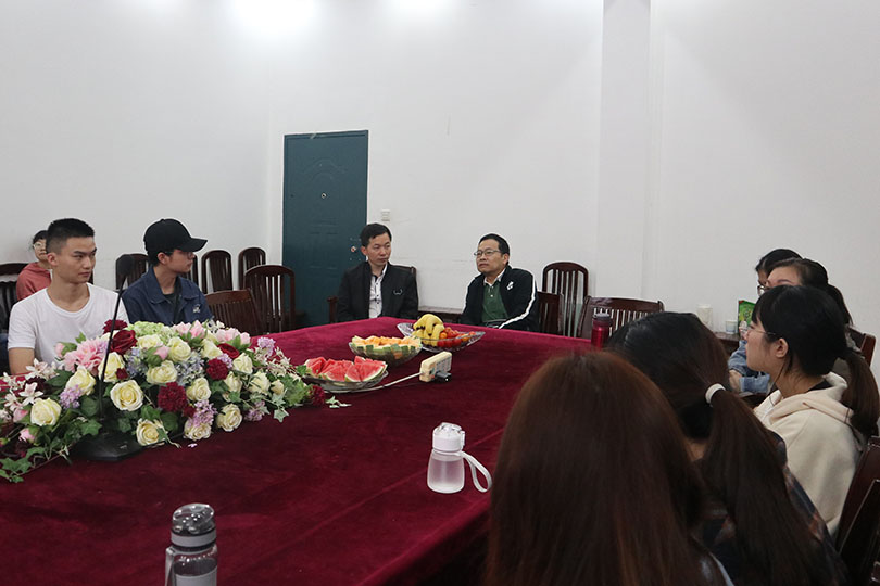 会上,邹正洪首先致开幕辞,他对员工挖掘古村落文化、研究皮影艺术、勇于打破绘画的形式与题材限制提出了赞赏,他认为员工作品具有现实主义的视角和浪漫主义的情怀。并且希望同学们能潜心创作,积极为第十三届美展做好准备。随后,龚畅与杨薇先后发言,他们强调了创作过程中画面整体与细节的把控的重要性,并希望同学们能一直保持这份创作的热情坚持至毕业。王洪斌在会上提到,他认为艺术源于生活也高于生活,每位创作者都应该不断培养自己发现美的能力,并运用到自己的创作当中去。接着,员工代表唐萌同学发言,她对本次画展内容进行了相关讲解,她指出,本次实践主题在于呼吁人们关注古村落的文化,要把实践转为更深的艺术创作,需要不断加强自然关怀。