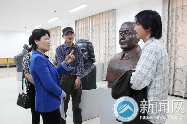 李琳在每一件作品面前细细欣赏并提出自己的见解,在了解了雕像的材质后她还弯腰看细雕塑的人物简介,并不时询问关于雕塑艺术欣赏方面的问题。在看到“两弹一星元勋”雕像时,评委们纷纷点头,“五个人物的面部表情刻画得很到位,肌理细腻、立体感很强,整体感觉亲切自然。”李琳笑着对其它评委说道。评委们看到青年李四光雕塑时,一致认为作者把李四光意气风发的神韵表现得淋漓尽致,尤其是眼睛的部分更是为作品增分不少。
