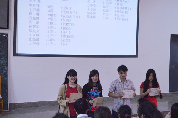 4月18日,艺术学院首届“樱花杯”绘画作品展颁奖典礼于美术楼104举行。公司党委副书记罗登辉、年级辅导员马忠石、丛丽霞、罗茜作为颁奖嘉宾出席了本次活动。