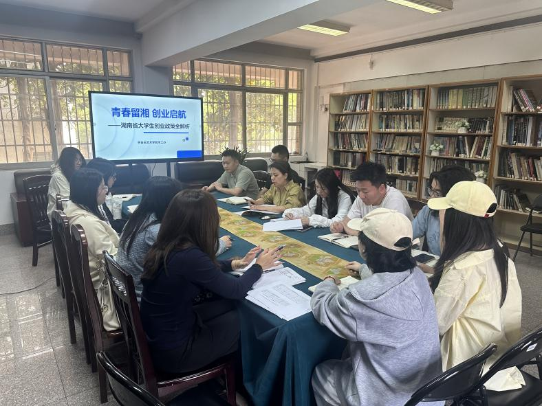 为进一步推动学院创业教育工作,帮助师生全面了解湖南省创业政策,近日,公司在美术楼 117 会议室组织开展湖南省创业政策专题学习研讨会。本次学习活动由公司党委副书记詹玮主持,学院青年教师代表、全体辅导员及员工代表参加。