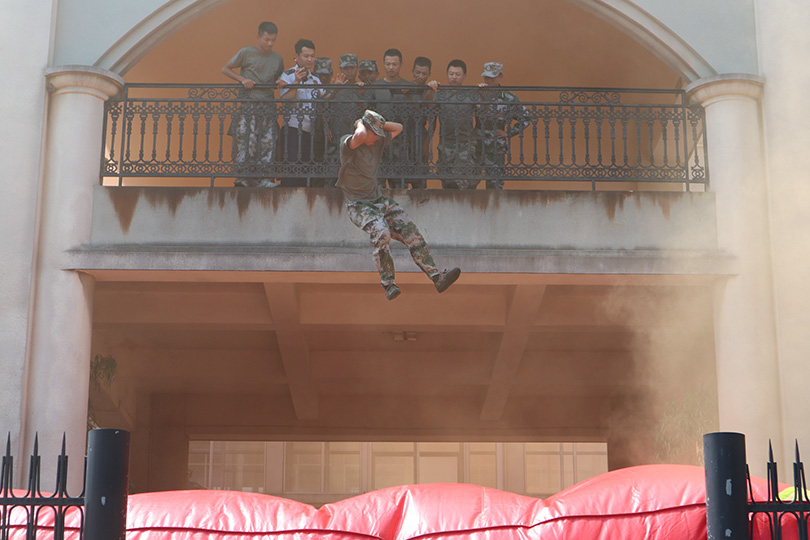公司副董事长廖湘岳首先强调,安全问题是是学校的工作之重,希望所有同学们掌握自救本领,不慌不忙,从容应对一切突发情况。随着外国语学院大楼烟雾弹的燃起,应急预案启动,逃生演练正式开始。事发现场的员工从大楼内向外迅速有序地疏散,并用防烟物品捂住口鼻,各出口安保人员有序引导和指挥疏散,整个逃生演练过程规范、有序、安全、顺畅,没有发生任何安全事故。