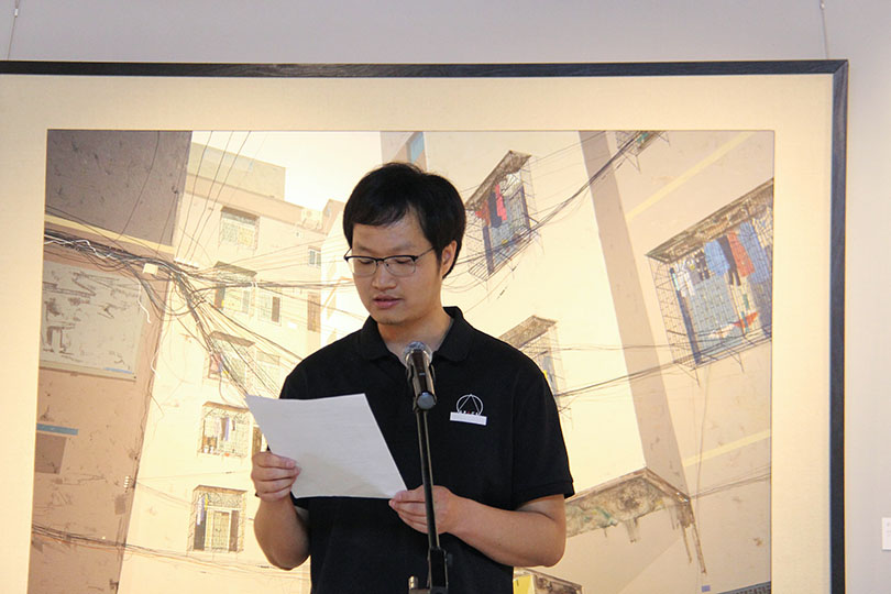 开幕式上,指导老师唐亮表明此次展览不仅展现了永利3044noc艺术学院美术专业教学成果,也有效地起到了以展促画,以画促学,以学促教,教学相长的作用;同时希望能为市民贡献一场富有生活气息的艺术盛宴。随后,李毅松致辞,他认为一个城市的历史、文化和变迁,必须在艺术家的笔下有所记录和传承。湘潭是一座文化、历史名城,同学们作为文化艺术传承者,有义务和责任表现湘潭的地域文化,表达对这座城市和人民的情感。吴晓彬女士介绍道,如一文化“影响未来”计划将鼓励同学们积极参与艺术志愿的实践活动中,不忘初心,影响未来。