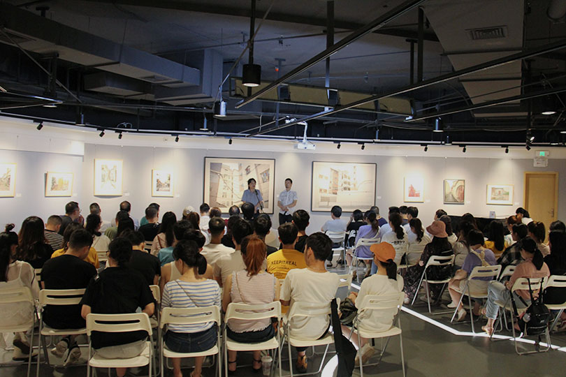 本次展览共展出70余幅员工作品,10余幅特邀教师作品。在写生中,师生们穿梭于周边老城的街角深巷中,力图还原过去的场景,感受最真实的生活气息。作者运用极强的想象力,渲染或幽深恬静或热闹喧嚣的氛围,精心处理每张画面的线条、色彩,用画笔表现着平凡生活中最质朴的美,画面上充满顽强生命力的痕迹也感染着每一位观者。作品题材丰富,主题鲜明,构图方式多样,蕴含着清幽静谧、深远厚重的年代感与文化气息,深刻反映了人民生活和时代精神,体现思想性与艺术性的融合统一。