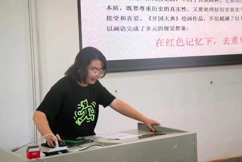 活动现场,何美兰同学为大家详尽地阐述了油画《开国大典》的党史渊源、创作动机及画家的生平事迹。她进一步深入剖析了画面的布局特色和艺术创作过程,通过引人入胜的故事叙述,使同学们对《开国大典》的变迁历程有了更为生动的认识。而张柯瑜同学则细致解读了这幅画作蕴含的深厚党史意义,通过提出三个关于开国大典的互动问题,让同学们深刻体会到开国大典成功举办的艰辛与智慧。这种活动不仅激发了同学们对红色历史事件和人物的学习热情,更在公司培育了浓厚的红色精神土壤。