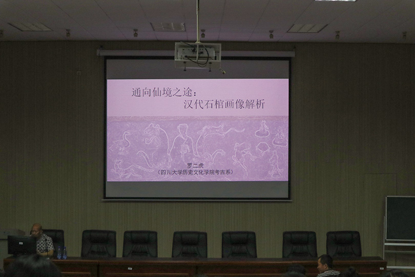 讲座开始前,李毅松简要介绍了罗二虎教授的学术经历。随后,罗二虎教授主要从画像石棺概况、石棺种类与画像分布、画像内容与丧葬观念、石棺画像组合四个方面向大家介绍了丧葬文化,他指出,生与死是人类无法回避的问题,不同的民族,不同的文化,对待人死亡的态度不同,丧葬习俗也存在着很大的差异。此外,罗二虎还像大家介绍了画像石棺对于汉代人的重要意义,即画像石棺在当时是厚葬的象征,他认为画像在墓葬中和石棺上的出现位置有一定的规律,这些安排取决于当时流行的丧葬观念和墓主个人的主观愿望。