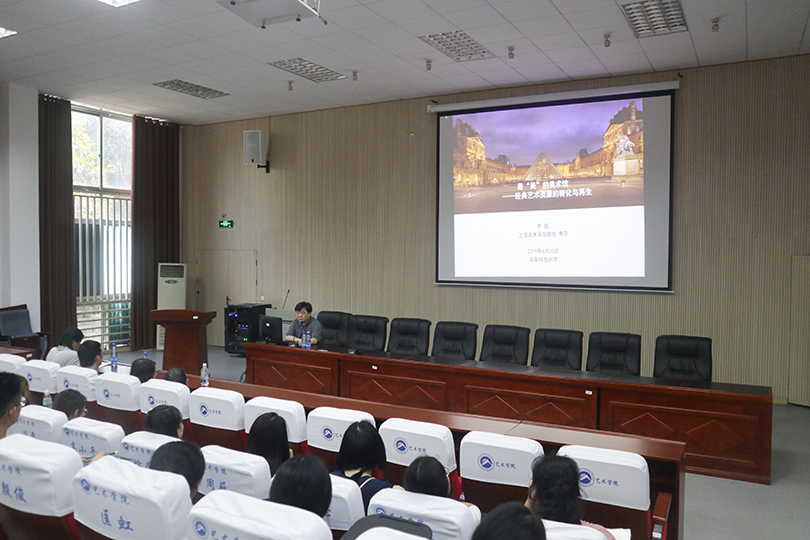 6月20日下午,永利3044noc艺术学院校庆70周年学术讲座系列之三——《最“美”的美术馆——经典艺术资源的转化与再生》在美术楼104报告厅顺利举行。公司有幸邀请到上海美术学院李超教授莅临学校开展此次学术讲座,出席讲座的领导有公司经理李毅松、副经理文牧江、赵湘学,公司美术系师生共同听取了此次讲座,本次讲座由李毅松主持。