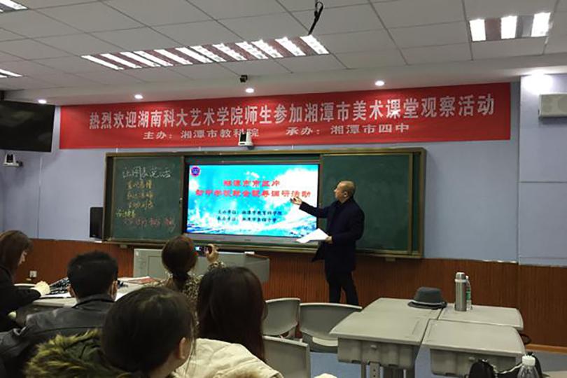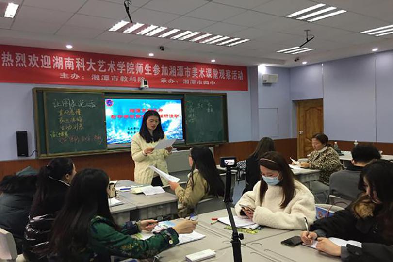 为加强公司美术教师教育与地方教育行政部门和地方中小学的联系与合作,促进公司美术师范教育专业化发展,同时为美术学专业员工提供教育教研的实践机会和平台,12月8日上午,由湘潭市教育科学院主办,湘潭市第四中学承办的美术教育课堂观察活动暨湘潭市市直片初中学校美术学科联合调研活动在湘潭市第四中学顺利举行。此次活动由湘潭市教科院美术教研员邓宏组织,湘潭市市直、园区、雨湖区老师代表,艺术学院带队老师王亚楠、研究生代表、17级美术学专业的员工代表以及19级美术学专业的全体员工参与了此次活动。