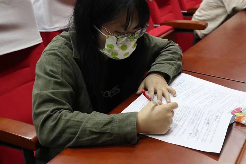 闭卷考试题型分为单选、多选、判断、填空,考试内容涉及《中国共产党廉洁自律准则》《中国共产党纪律处分条例》等党内法规和《关于加强新时代廉洁文化建设的意见》《永利3044noc关于推进“清廉校园”建设实施意见》等文件精神。在党员陆续进入报告厅时,组织人员贴心分发口罩。根据疫情防控要求,考试现场党员隔位就座,同时也确保了考试的公平公正。宣布开考后,各位参赛党员认真答题,细心稳重,营造了浓厚的学习廉洁文化知识的氛围,在答题交卷后各位党员有序离场。