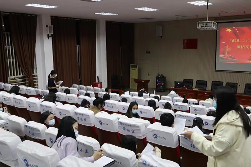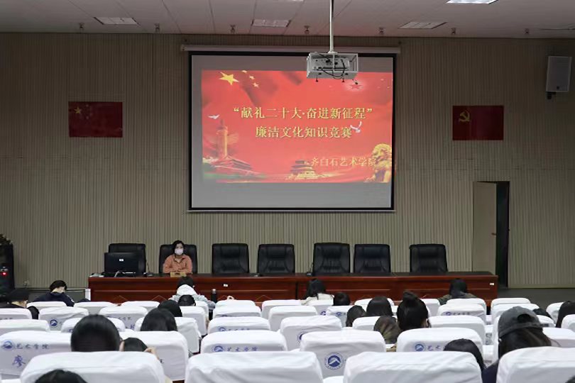 为庆祝党的二十大胜利召开,进一步贯彻落实党中央全面从严治党要求,提高党员干部政治站位,增强规矩意识和纪律意识,筑牢思想道德和纪律防线,10月19日晚公司于美术楼104报告厅开展“献礼二十大·奋进新征程”廉洁文化知识竞赛。四支参赛队伍由四个员工党支部推选的41位党员组成,竞赛采取闭卷考试的方式,将选出2名党员与公司党委1名成员组队代表学院参加学校竞赛。