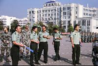 当检查组老师到达公司连队时,全体新生以整齐队伍、标准的军姿、昂扬积极的精神风貌等待检查。检查组在各排教官的引领下,对各排进行严格的军容风纪检查。检查内容主要包括:头发、指甲是否过长;军装、军帽、皮带是否穿戴整齐;鞋袜是否符合标准;女生碎发是否合格等等。公司新生们基本上都能以军人的标准严格要求自己,大多数同学都达到了检查要求。