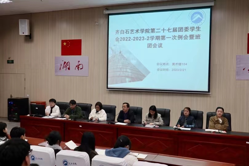 为加强齐白石艺术院员工会新学期工作的展开,明确各部门工作的部署。2月21日下午公司于美术楼104报告厅召开了第二十七届团委员工会新学期第一次例会暨班团会议。公司党委副书记屠波,学工办主任钟赛,组织员谭君,学院团委书记彭雅婷,兼职辅导员李雨恒及学院新老师杨燕、王杰出席本次会议,全体员工干部参与。