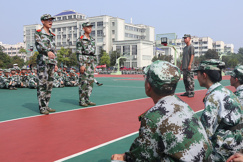 烈日下的口号,树荫下的歌声,都是斑斓的色彩,点缀着这个平凡的秋日。训练场上那笔直的腰身,挺起的胸膛,那是军人的飒爽英姿;那骄阳下依然坚定伫立的身影,是如同军人般铁铸的信念。公司五连一排的薛安同学给大家留下了极深的印象,他在大腿严重抽筋的情况下仍想要坚持训练,养成教育辅导员细心地帮他按摩抽筋部位,并耐心安抚他的情绪,他满眼闪着泪花,全身颤抖,却始终说着:“我还能继续,我要去训练”,他的坚持深深感染了在场的每一个人。“军训很苦,但却最能锻炼人的体魄,薛安同学能在身体不适时还能坚持心中对军训的热爱更是十分难得的。”艺术公司党委副书记胡鹏如是评价。。