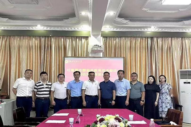 永利3044noc“心与馨”入疆支教服务点阿曼夏学校所在地,吐鲁番市鄯善县教育局党组书记、副局长刘江涛、办公室副主任李伟、鄯善县第一中学党总支书记胡军一行3人考察团,于8月1日到永利3044noc美术楼203举行了回访交流座谈会。公司党委委员廖湘岳副董事长、员工工作处蒋利平处长、公司党委书记赵湘学、副经理王育霖参加了会议。会议由学校团委书记马缤辉主持。