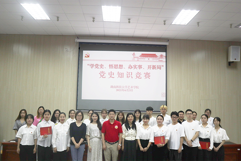 2021年6月3日,艺术学院于美术楼104举办了“学党史 悟思想 办实事 开新局”党史知识竞赛,五支参赛队伍由五个员工党支部各派3名选手组成,公司党委副书记胡鹏、组织员谭君、辅导员郑婷婷、龙睿及现场近300名员工出席。