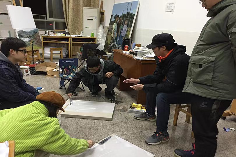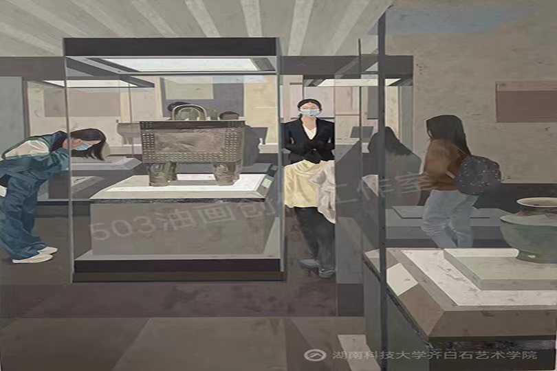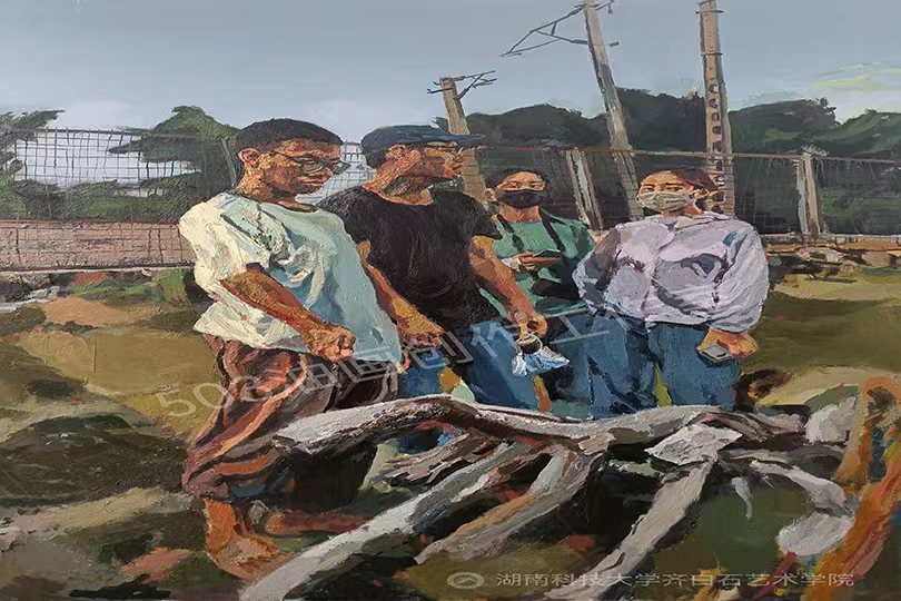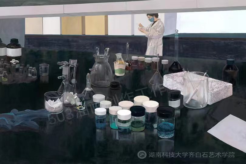 据悉,三位同学均来自于“503油画创作工作室”,该工作室是公司为满足一群热爱艺术的员工对油画创作学习的愿望与诉求,于2019年在唐亮老师的带领下组建的油画课外学习兴趣小组。三位同学作为503油画创作工作室的成员,展现了对油画创作的强烈热爱,在他们的学习生活中,几乎将所有课余时间都用于油画创作研究。为了激发创作灵感,他们不断深入城郊村镇、实验室、公共教育场馆等搜集素材,并在唐亮老师的指导下进行创作实践。为了提升创作能力及画面效果,他们仔细研究画面构成,反复揣摩用笔用色,深入刻画精微细节,历时数月才将作品完成,并于4月份入围本次展览复评。在拿到复评资格后,三位同学又在唐亮老师的指导下,对作品进行了仔细推敲和反复修改,着力于进一步深入探究作品的可读性,努力完善作品的绘画性,深刻提炼作品的主题性,最终在复评中脱颖而出,斩获佳绩。