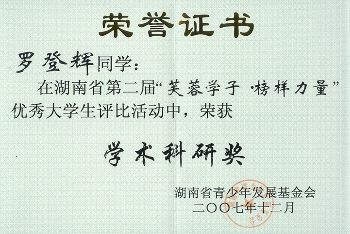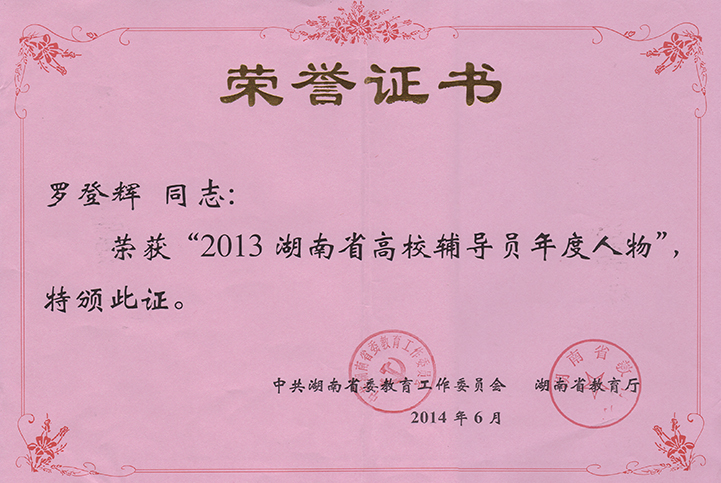 近日,“2013年湖南省高校辅导员年度人物”评选结果揭晓,公司罗登辉老师获此殊荣,这是自该项评选活动开展以来,公司辅导员第一次荣获该级别奖项。 罗登辉老师从事员工工作十二年,他十年如一日的坚守在员工工作第一线,用爱浇灌员工,倾心培育员工。参加工作以来,曾获“湖南省思想政治教育研究先进个人”、“湖南省科技进步奖”、“湖南省‘芙蓉学子·学术科研奖’”等省、市、校各级奖项累计30余项,主持、参与多项思想政治教育课题。他被员工亲切地称之为“罗帅”,他的事迹以“魅力老师罗登辉”为题被《湖南日报》旗下媒体《新闻传媒网》专题报道。 “湖南省辅导员年度人物”评选活动由省教育工委组织,旨在宣传高校优秀辅导员的先进事迹,展示全省高校辅导员队伍建设的优秀成果,建设一支高素质专业化职业化辅导员队伍。到目前,已连续举办六届,每年在全省高校专职辅导员中评选“高校辅导员年度人物”10名,“高校辅导员年度人物”提名奖20名,并择优推荐参加“全国高校辅导员年度人物”评选。