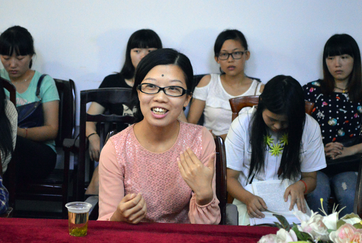 随后宋琼同学以“因为感恩我变得更优秀”为主题,汇报了入学以来的学习情况、学年获奖情况及自己的作品。最后,宋琼同学表示会用积极乐观的心态面对未来的发展,用更好的成绩回报学院对自己的培养。