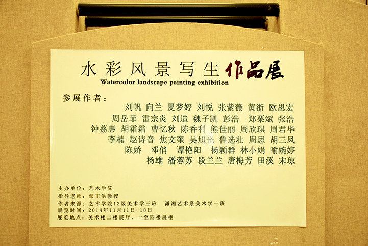 11月11日,艺术学院色彩风景写生作品展于美术楼二楼展厅顺利开幕。本次画展展示出了艺术学院12级美术学3班和潇湘学院艺术系美术学1班员工600余幅优秀写生作品,所有作品由艺术学院副经理邹正洪教授指导。