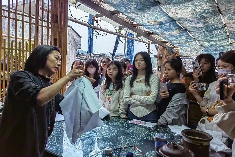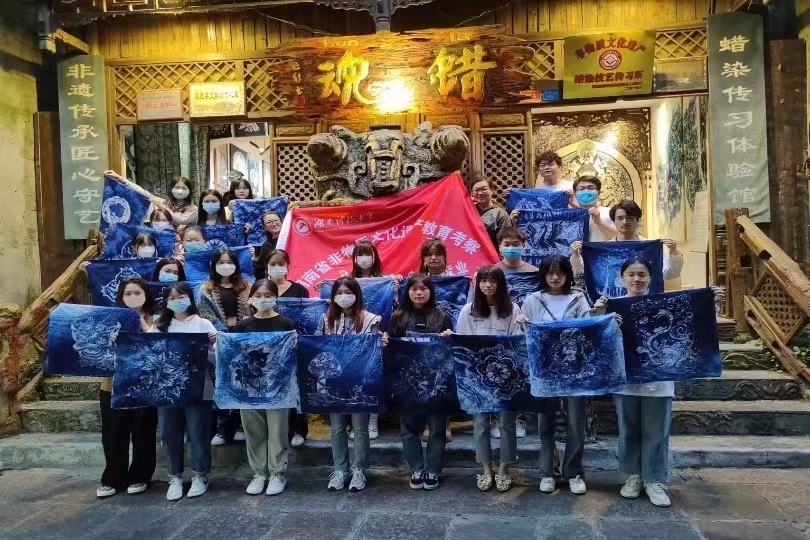 此次非物质文化遗产教育考察,同学们置身于美丽的凤凰古城切身体验蜡染扎染艺术,在体验非遗之美的过程中厚植工匠精神,弘扬传统艺术,创新非遗文化,相信每一位同学今后都能身体力行地成为非遗的践行者、传承者。
