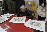 11月7日,张先生在丝网版画工作室为版画专业员工上课一天,以水彩直接制版法和感光制版法分别做了现场示范,从绘制(绘画,制版)到印刷让员工体验了两种丝网版画制作的全过程,并深刻感受到丝网版画的绘画表现力及其独特的艺术魅力!