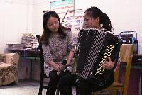 随后,我们邀请老人们到演出厅观看演出,同学们纷纷施才献艺,为老人们献上了精心准备的文艺节目,如手风琴《贝加尔湖畔》,歌曲《十送红军》等,为活动增添融洽和谐的气氛。在这里,岁月的斑驳似乎随着我们的节目显得愈发轻了些,他们仿佛蜕下束缚的躯壳,像个少年般欢呼呐喊手舞足蹈,更有自发上台献唱的奶奶,艺惊四座,赢得了全场的热烈掌声。