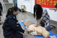 蓝天救援队队长对心肺复苏操作程序详细介绍了评估环境、判断意识、紧急呼救、调整体位、判断呼吸、胸外按压、开放气道、人工呼吸8个步骤。并手把手对在座的同学按压方式进行教导。同学们纷纷上台操作,热情高涨。