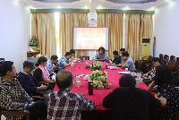 “尊重教师、礼拜教学”,5月17日下午,艺术学院在美术楼203召开2015-2016第二学期教学工作会议。此次会议主要是学院总结1-11周的教学工作、听取各位老师对教学工作的意见与建议,并对下一阶段的教学工作进行布置。会议由主管教学的副经理熊晓辉主持,经理李毅松,副经理邹正洪、公司党委副书记罗登辉出席了此次会议,三办一室主任、各教学系系主任和教师代表参加了此次会议。