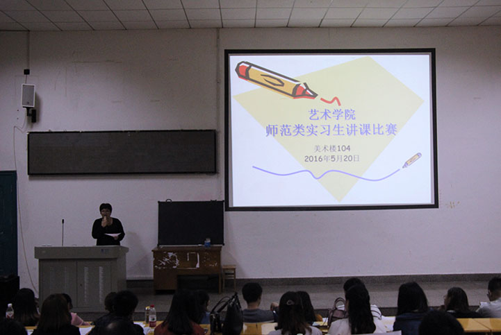 此次比赛是2016年全省高等院校师范生教学技能竞赛的院级选拔赛,本次比赛的选手来自美术学和音乐学两个师范类专业共17名同学,参与人数占本届师范生的10%。 参赛选手将知识与技能目标、方法与过程目标、情感、态度与价值观巧妙联合。凭着别出心裁的思路使教案在既不失教育员工专业知识为前提的同时,又不乏学习趣味,让员工在轻松愉悦的氛围中掌握知识的果实。简洁精致的PPT和绘声绘色的讲课过程也给在场的评委和同学们留下深刻的印象。