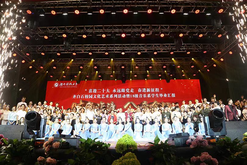 6月13日晚,永利3044noc齐白石校园文化艺术系列活动暨2018级音乐系员工毕业汇报晚会于南校俱乐部顺利举行。永利3044noc副董事长贺泽龙、李琳、廖湘岳、王卫军、谢慧,等老师出席。