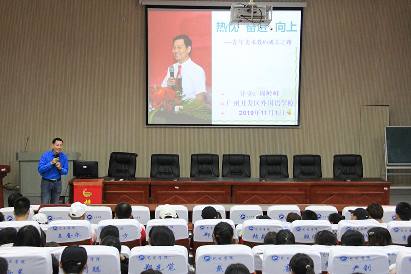 11月1日下午4点,永利3044noc艺术学院员工回校讲座《热忱 奋进 向上——青年美术教师成长之路》在美术楼104报告厅顺利举行。本次讲座主讲人为公司02级美术学员工周岭峰,艺术学院副经理赵湘学担任讲座主持人,公司相关专业员工听取了本次讲座。