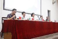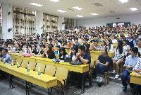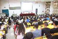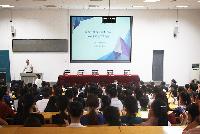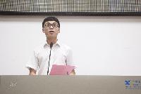 高年级优秀员工代表、二十一届团委员工会主席汤顺鑫、本科新生代表卢鑫、硕士研究生代表李美龄纷纷上台演讲。汤顺鑫学长结合自身经验,向2016级新生就如何合理规划老员工活给出意见建议。