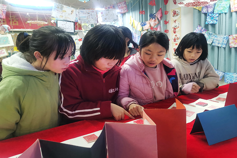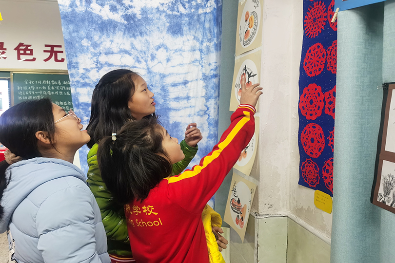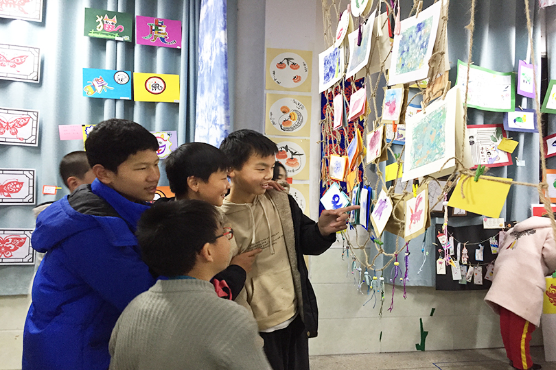 展览集中展示了2017级美术学专业在启航学校官家嘴校区18位实习生的教学成果,分为创意美术课程和非遗校本课程两大板块,涵盖国画、水彩、手工、设计、篆刻、装置等多种形式,包括民间剪纸、踏虎凿花、扎染、苗画等多种非遗文化。作品形式多样,内容丰富,每一幅作品都充满了灵性,既抒发了留守儿童的真情实感,也增强了他们的自信心。在美术教育实习中,通过一系列非遗进校园的活动,让中小员工感受非遗文化的独特魅力,从而增强他们热爱祖国以及传承并弘扬中华优秀传统文化的意识。