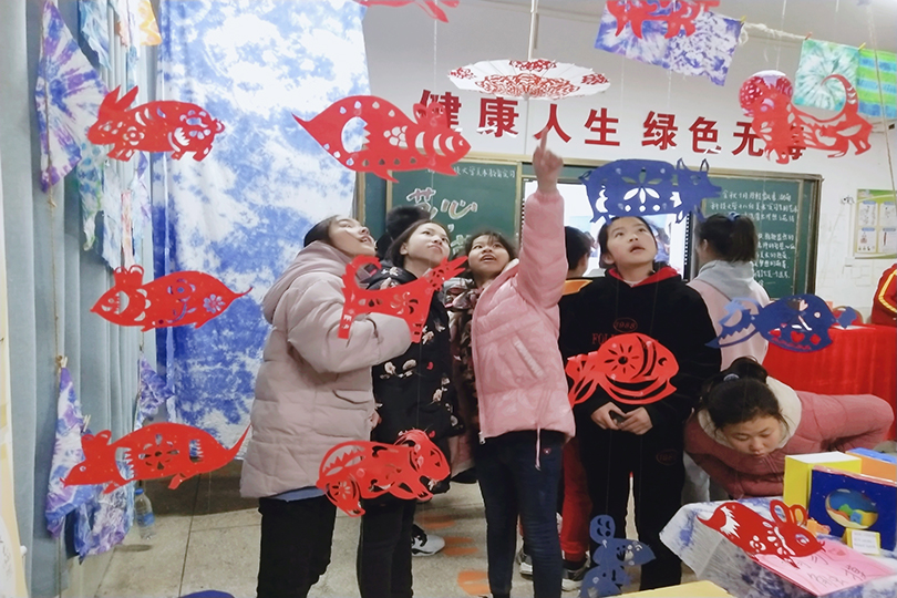 一件件色彩明快、质朴自然、稚趣盎然的员工作品,不仅凝聚着每一位美术实习老师的智慧和汗水,而且充分展现了孩子们对生活的热爱和对艺术的追求。留守儿童用不同的造型和色彩勾勒出自己心目中的完美世界,蕴含了他们内心深处纯洁而又向善的情感。这里有随心所欲的信笔涂鸦,有精心勾画的迷人线条,有绚丽多彩的景致画卷,有创意无限的手工制作……这是艺术的萌芽,也是梦想的萌芽,我们应该为他们点赞!