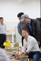 专家们在雕塑楼对员工的雕塑作品纷纷表示赞叹不已,并虚心地请教。雕塑系张优群老师对作品的材料及制作等每个环节都做了详细认真的解答。此外,专家们还参观了公司的陶艺教室,专家们对陶艺小作品甚是喜欢,跃跃欲试想要自己动手制作。
