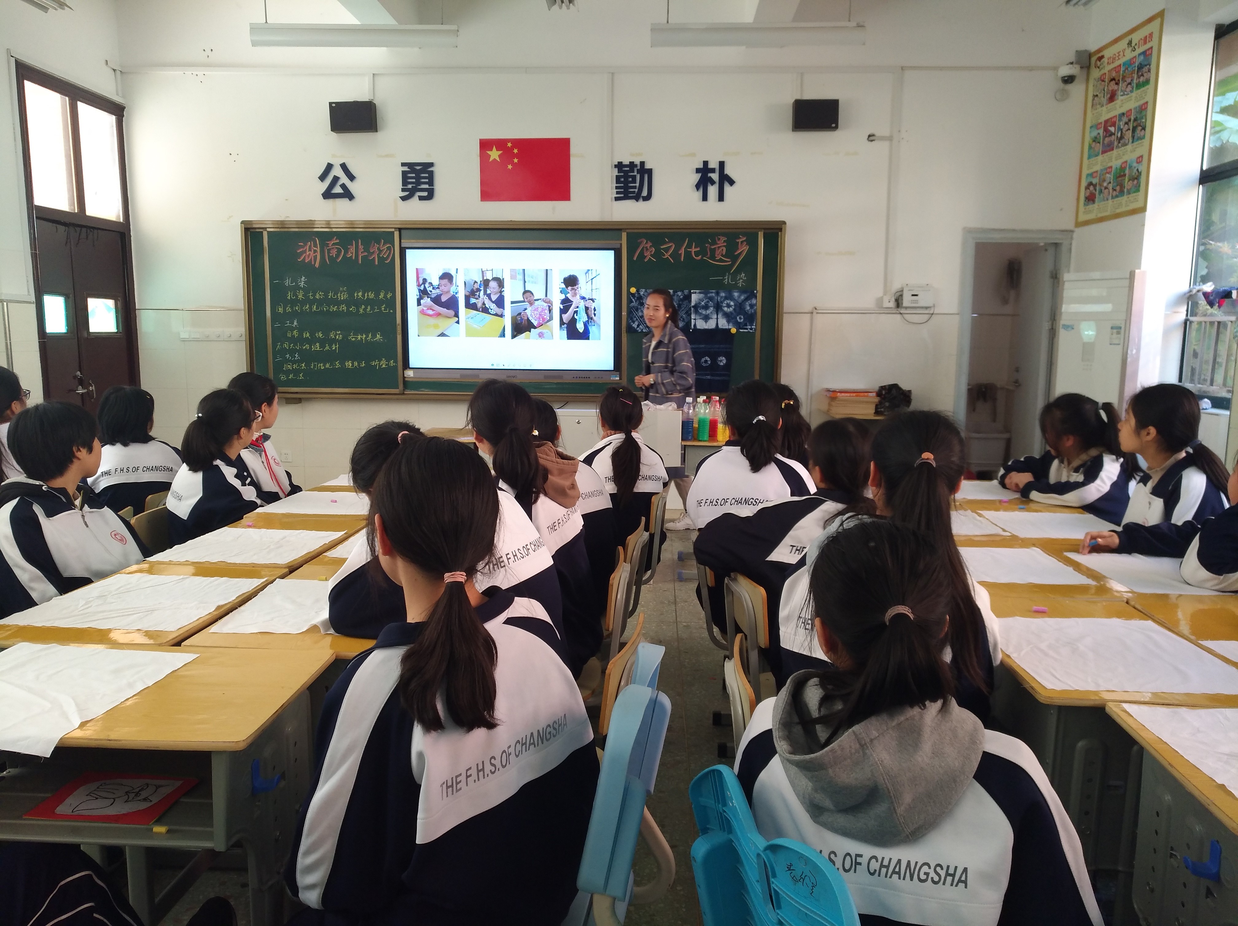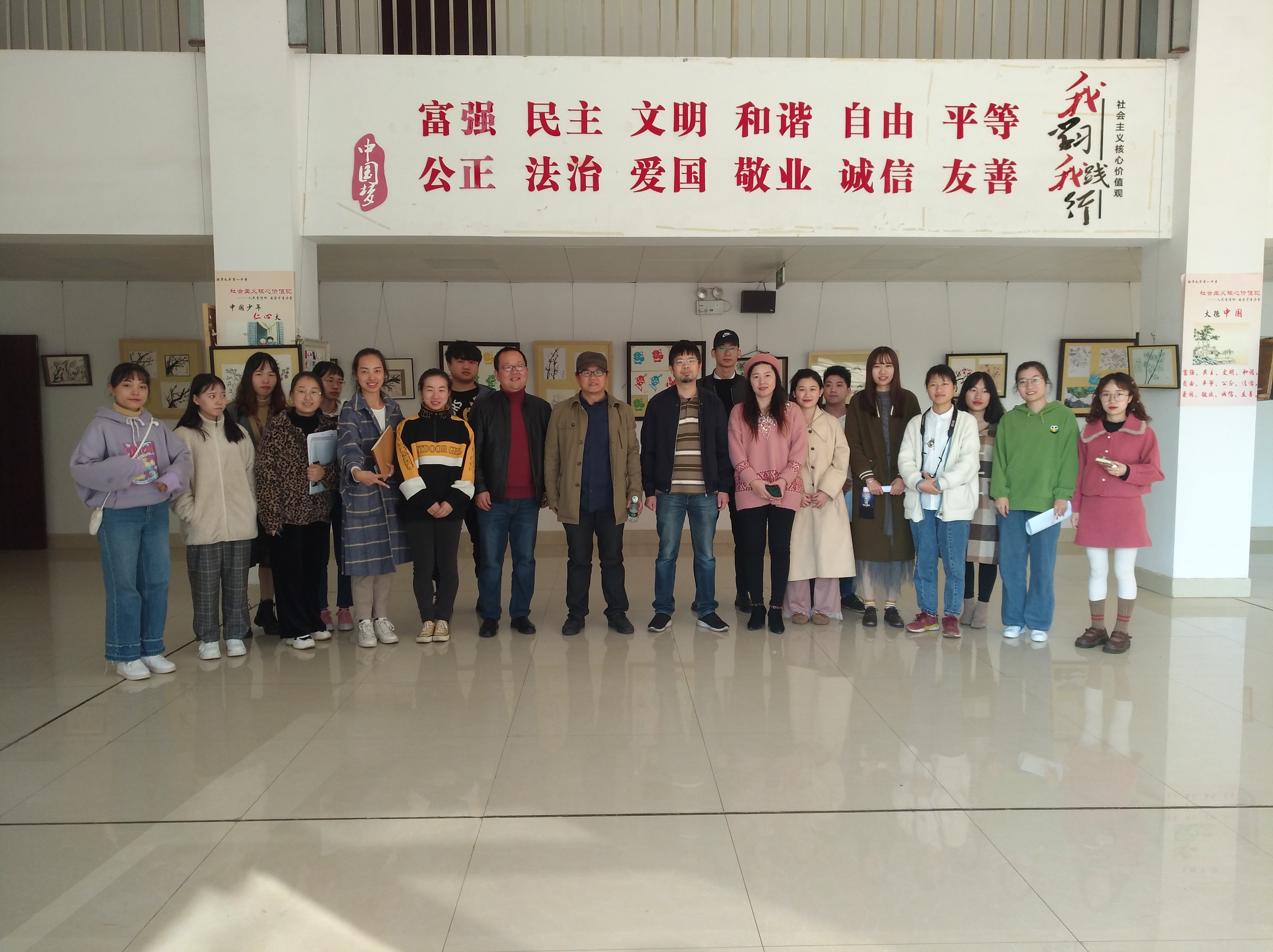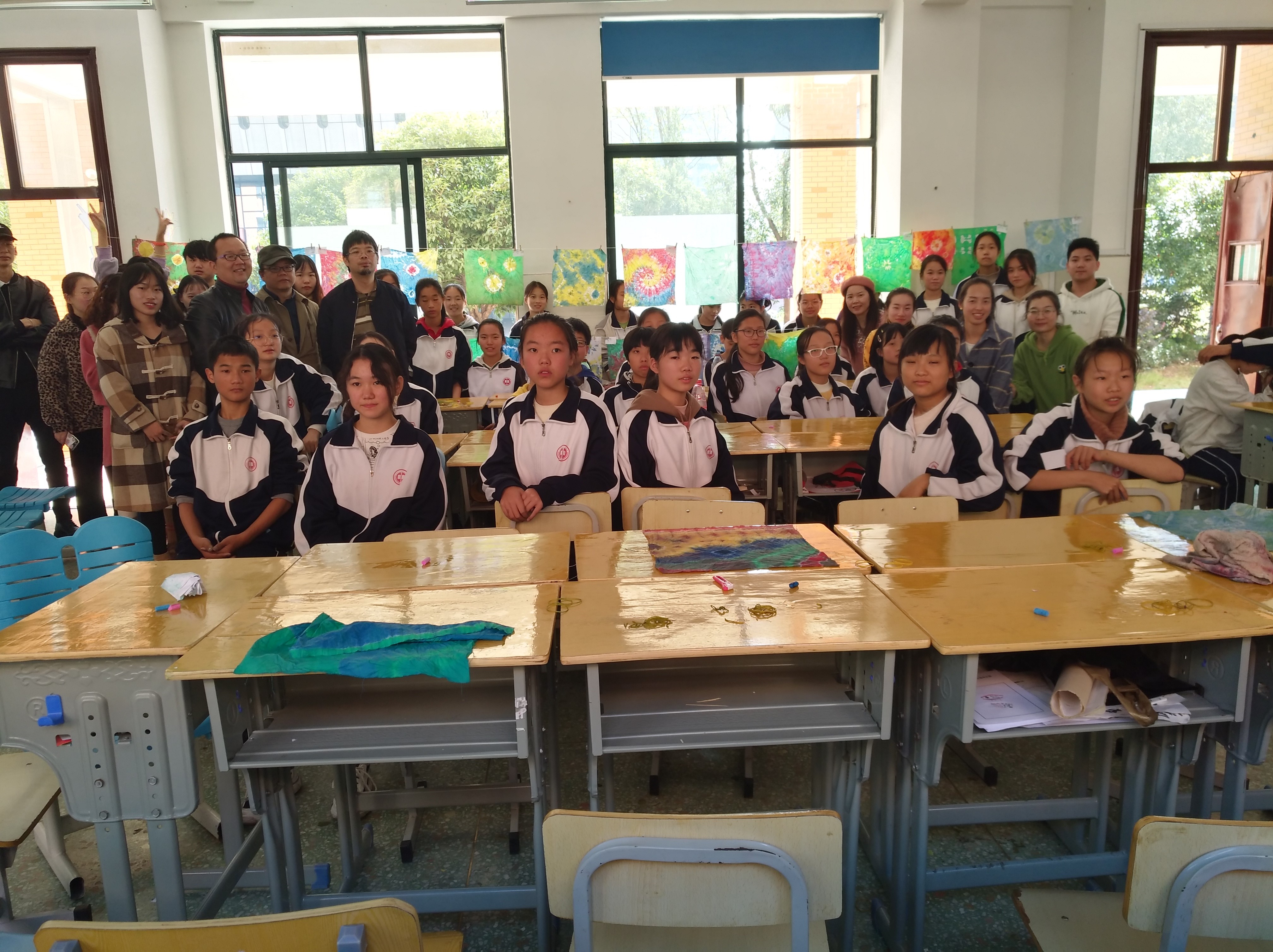 11月21日,永利3044noc艺术学院副经理赵湘学,美术系主任雷永明,教务办主任从丽侠来到长沙市一中九华中学检查教育实习情况,看望实习员工,听取汇报课,开展座谈,观看美术作品展并合影留念。学院检查人员中午一到九华中学就开始听实习生郭丽莎讲的“非遗”美术兴趣小组课。实习生们将湘西非物质遗产考察的成果应用于课外兴趣小组的实践教学。本次课堂中实习老师讲述了“扎染”的起源、特点,再到具体的制作细节,边讲边示范,步步深入,引导员工构思,指导员工捆扎,染色,拆线。课堂气氛无比活跃,员工兴趣高昂,大家纷纷动手,一幅幅精彩的“扎染”作品展现在课堂上。一块块色彩斑斓的布迎风飞舞,闪烁着靓丽的青春之光。最后,实习老师还请让同学们评选最具创意的作品。这种以兴趣为导向,寓教于乐的课堂,更好地弘扬和传承了中华民族的优秀传统文化。之后,艺术学院的领导和九华中学的老师们又听了实习生杨芸凤的汇报课——用画笔触摸细节。上课一开始,一幅活动的《清明上河图》带员工走入绘画世界,然后又从梵高的流动的笔触中体会艺术的魅力。杨芸凤老师由浅入深、循序渐进的讲解,让中学的美术课堂非常安静,大家都在用心聆听艺术的故事。讲授环节以后,同学们早就跃跃欲试的双手画出了一幅幅富有创意的作品。