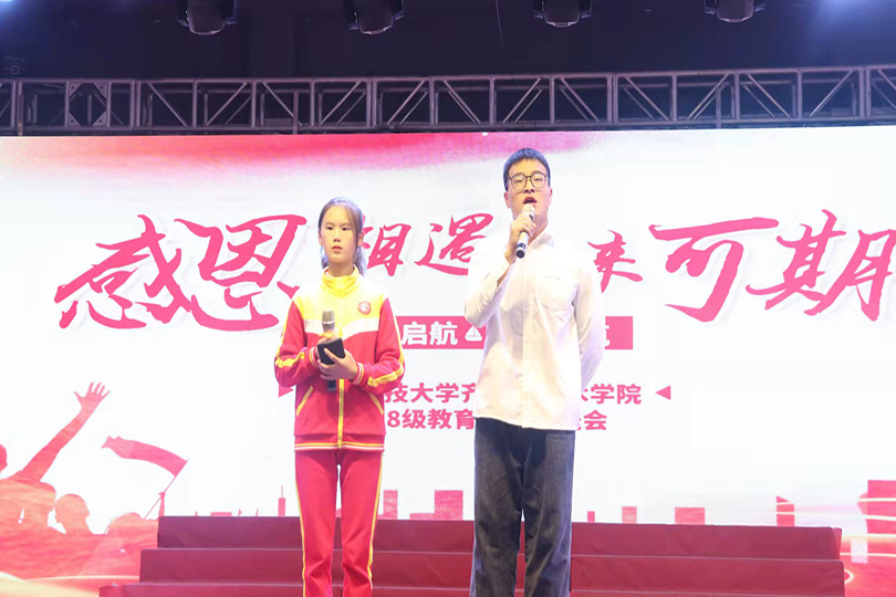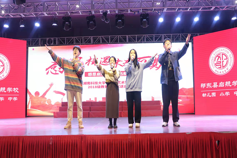 指导老师代表科大音乐专业毕业生杨磊发言。杨老师回忆从一个初出茅庐的实习生,到正式成为启航学校初中部的一名教师。享受着一步一个脚印给我带来的成长的喜悦和自豪。留一份爱心在乡村,不久之后就会开出灿烂的花。也希望亲爱的学弟学妹们,你们在实习中遇到的种种,都是未来从教路上不可多得的财富,相信你们在今后的道路中,能够乘风破浪,砥砺前行!