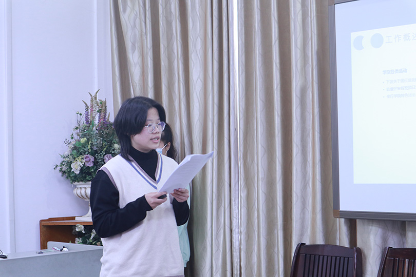 会前,各部门轮流播放精心准备的视频,展示各具特色的部门文化,回望取得的优异成绩,获得与会人员的阵阵掌声。各部门部长依次上台述职,以制作精良的演示文稿为基础,结合部门特点,集中展示部门成员风采和特色文化建设,在全面总结以往工作得失的同时,不忘对未来进行展望与规划,力争更上一层楼,为构建更优秀的员工会继续努力。台下同学认真聆听,掌声不绝。每位部长述职后,主席团成员针对各部门工作的不足之处、未来发展与创新方向等提出问题,各部门部长条理清晰,应答自如,赢得全场一致好评。在全体成员的热烈掌声中,本次大会落下帷幕。