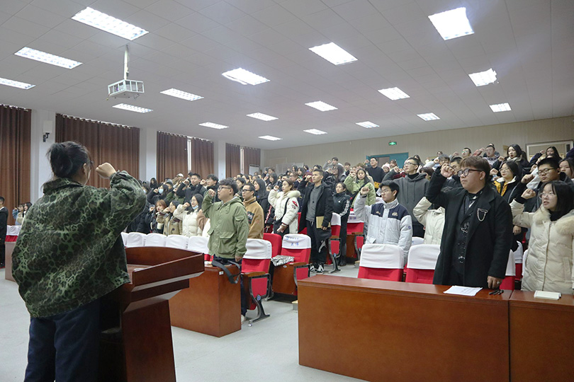 王海雪带领全体员工干部庄严宣誓。