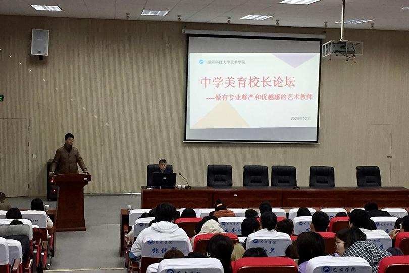 为进一步促进永利3044noc艺术学院师范教育专业的建设和发展,加强与基础学校及地方教育行政部门的合作对接,艺术学院特开展“中学美育董事长论坛”专题活动。活动通过邀请地方知名中学董事长开展专题讲座及论坛,帮助师范生了解基础教育阶段音美专业教师在推进学校美育中所发挥的作用和使命,从而清晰从事教师职业所需的教育技能和未来职业的发展方向。2020年12月28号上午,公司特邀请长沙市一中九华中学谢晓红董事长,于美术楼104会议室开展以“做有专业尊严和优越感的艺术教师”为主题的专题讲座,17级美术学专业和音乐学专业的全体同学及师范教育课程专任教师聆听了本次讲座。