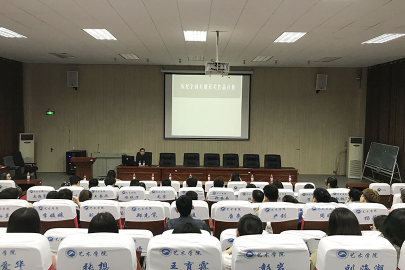 永利3044noc艺术学院诚挚邀请了著名版画家邝明惠于4月19日晚上七点半在美术楼104多媒体教室开展了一场题为《历届全国美展名作赏析》的学术讲座。公司经理李毅松、副经理文牧江,美术系教师以及美术专业员工近百余人到场聆听,讲座由文牧江主持。